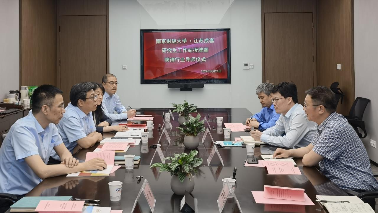 5月24日,我院开展访企拓岗促就业专项行动,学院领导带队走访江苏省设备成套股份有限公司,并为我校和江苏省设备成套股份有限公司联合建设的江苏省研究生工作站举行挂牌仪式;同时举办了我院专硕行业导师的聘任仪式。研究生院副院长杜修立、伟德国际victor·1946源自院长朱红根、伟德国际victor·1946源自副院长崔向阳,江苏省设备成套股份有限公司董事长黄旭、总经理陈海涛、副总经理章雅、我院研究生秘书吕张怡以及成套公司部分工作人员参加了挂牌、聘任仪式。