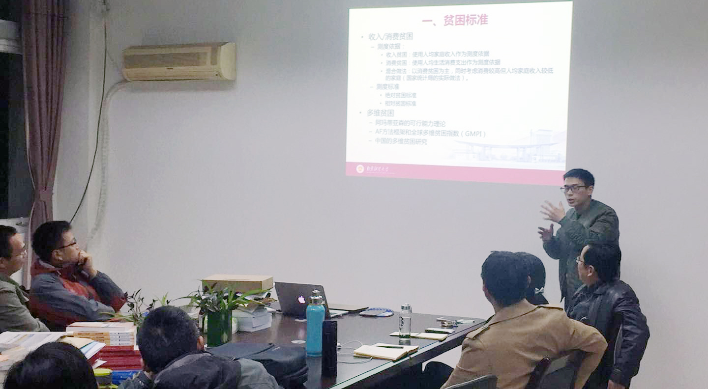 2017年11月1日,我院“收入分配与经济增长”学术论坛第16次报告会在统计系会议室召开。本次讨论会由我院副院长叶林祥教授主持,我院青年教师詹鹏博士介绍了近期成果《政策演进下的中国多维贫困(1995-2013)》。我院副院长尹敬东教授、副院长叶林祥教授、统计学学科带头人白先春教授、章莉副教授、姚清铁副教授等教师和部分研究生参与了会议讨论。