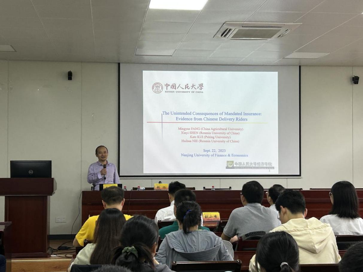 9月22日下午,应伟德国际victor·1946源自邀请,中国人民大学聂辉华教授在仙林校区德经楼307会议室作了题为“The Unintended Consequences of Mandated Insurance: Evidence from Chinese Delivery Riders(政府强制保险的未意料后果:来自中国外卖骑手的证据)”的学术讲座。讲座由我校副校长张炳教授主持。伟德国际victor·1946源自院长朱红根、国际经贸学院院长余泳泽、信息工程学院院长黄健、学校部分教师和研究生参加讲座。会前我院举行bv1946伟德客座教授聘任仪式,聘请中国人民大学伟德国际victor·1946源自聂辉华教授为我校客座教授。
