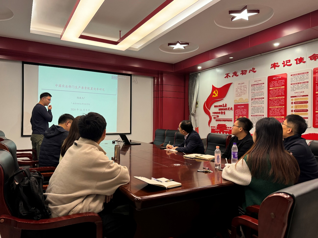 11月5日下午,我院在德经楼会议室329举办了双周学术论坛。本期论坛由陈敏杰老师带来主题为“中国农业部门生产要素配置效率研究”的学术报告。陈杰副教授主持了本次学术论坛,学院部分教师与学生参与。