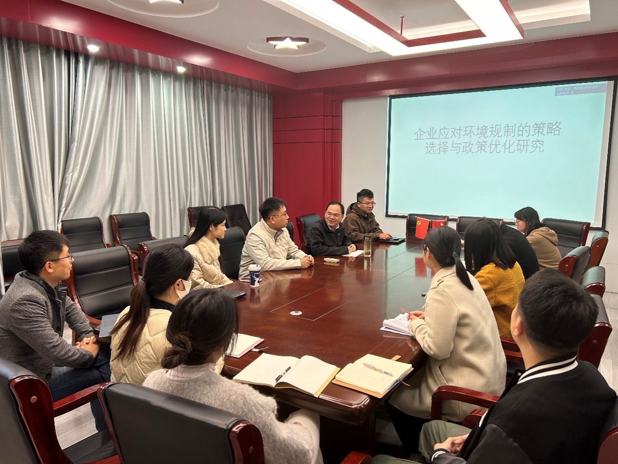 11月19日下午,我院在德经楼329举办了双周学术论坛。本期论坛由杨晓蕾老师带来主题为“企业应对环境规制的策略选择与政策优化研究”的报告。刘小峰教授主持,学院部分青年教师参加。